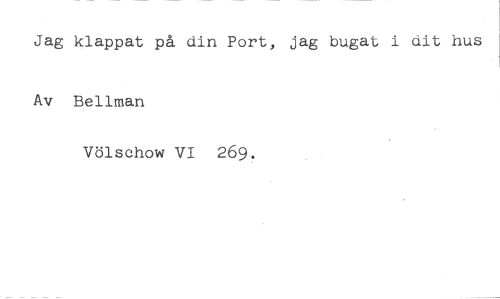 Jag klappat på din Port, jag bugat i dit hus //// Av Bellman //// Völschow VI 269.