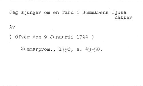 Jag sjunger om en färd i Sommarens ljusa //// nätter //// Av //// ( öfver den 9 Januarii 1794 ) //// Sommarprom., 1796, s. 49-50.