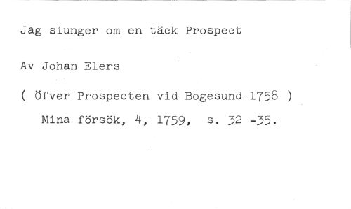 Jag siunger om en täck Prospect Av Johan Elers //// ( öfver Prospecten vid Bogesund 1758 ) Mina försök, 4, 1759, s. 32 -35.