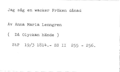 Jag såg en wacker Fröken dånad //// Av Anna Maria Lenngren ( Då Olyckan hände ) //// StP 19/3 1814.- SS II 255 - 256.