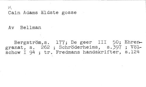 k/\ //// Cain Adams äldste gosse //// Av Bellman //// Bergström,s. 177; De geer III 50; Ehrengranat, s. 262 ; Schröderheims, s.397 ; Völschow I 94 ; tr. Fredmans handskrifter, s.124