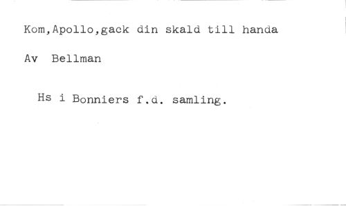 Kom,Apollo,gack din skald till handa Av Bellman //// Hs i Bonniers f.d. samling.