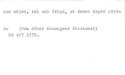 Kom nöjen, lek och frögd, at denna dagen pryda //// Av (Ode öfwer Konungens återkomst) //// DA 4/7 1775.