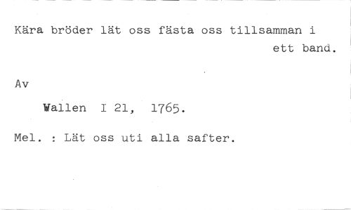 Kära bröder lät oss fästa oss tillsamman i //// ett band. //// Av //// Vallen I 21, 1765. //// Mel. : Lät oss uti alla safter.