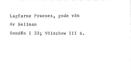 Lagfarne Praeses, gode vän Av Bellman //// Sond6n I 33; Völschow III 6.