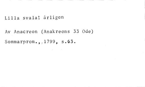 Lilla svala! årligen //// Av Anacreon (Anakreons 33 Ode) Sommarprom.,1799, s.63.