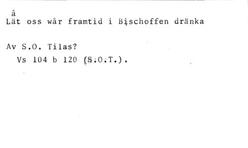 å //// Lät oss wär framtid i Bjschoffen dränka //// Av S.O. Tilas? //// Vs 104 b 120 (M.T.).