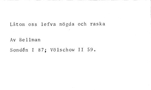 Låtom oss lefva nögda och raska //// Av Bellman //// Sonden I 87; Völschow II 59.