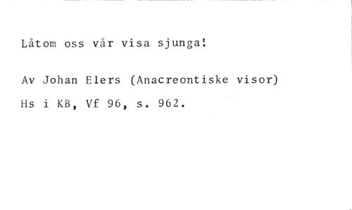 Låtom oss vår visa sjunga! //// Av Johan Elers (Anacreontiske visor) Hs i KB, Vf 96, s. 962.