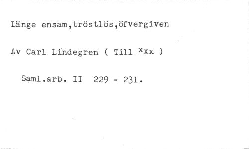 Länge ensamItröstlös,öfvergiven Av Carl Lindegren ( Till xxx ) Saml.arb. II 229 - 231.