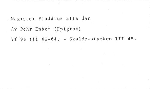 Magister Fluddius alla dar Av Pehr Enbom (Epigram) //// Vf 98 III 63-64. - Skalde-stycken III 45.