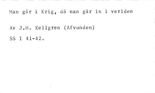 Man går i Krig, då man går in i verlden //// Av J.H. Kellgren (Afvunden SS I 41-42.