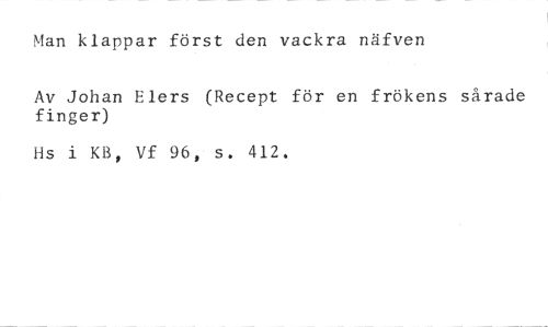 Man klappar först den vackra näfven //// Av Johan Elers (Recept för en frökens sårade finger) //// Hs i KB, Vf 96, s. 412.
