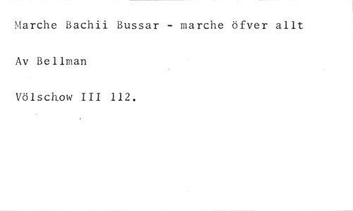 Marche Bachii Bussar - marche öfver allt Av Bellman //// Völscnow III 112.