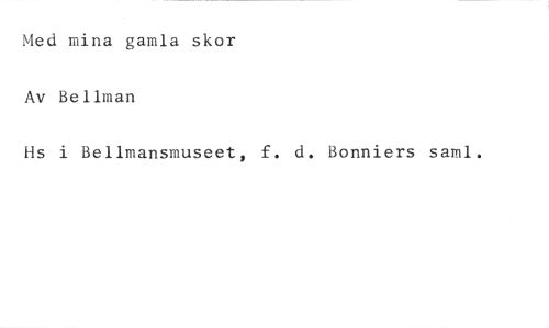 Med mina gamla skor Av Bellman //// Hs i Bellmansmuseet, f. d. Bonniers samt.