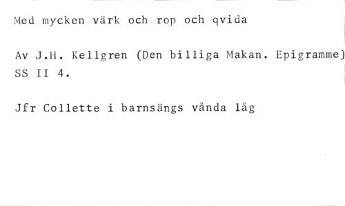 Med mycken värk och rop och qvida //// Av J.H. Kellgren (Den billiga Makan. Epigramme) SS II 4. //// Jfr Collette i barnsängs vånda låg