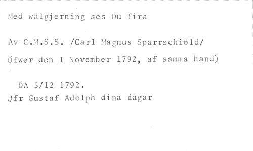 Med wälgjerning ses Du fira //// Av C.M.S.S. /Carl Magnus Sparrschiöld/ Öfwer den 1 November 1792, af samma hand) //// DA 5/12 1792. //// Jfr Gustaf Adolph dina dagar
