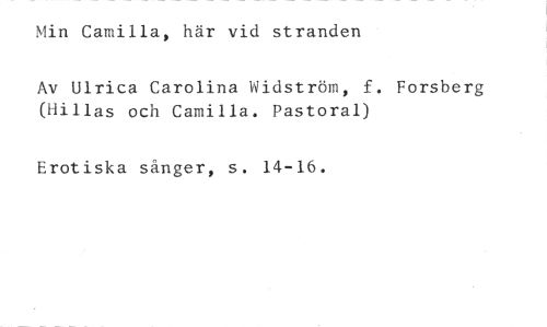 Min Camilla, här vid stranden //// Av Ulrica Carolina Widström, f. Forsberg (Hillas och Camilla. Pastoral) //// Erotiska sånger, s. 14-16.