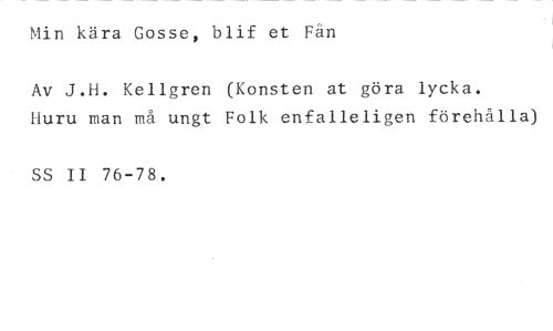 Min kära Gosse, blif et Fån //// Av J.H. Kellgren (Konsten at göra lycka. //// Huru man må ungt Folk enfalleligen förehålla) //// SS II 76-78.