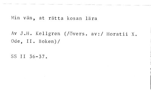 Min vän, at rätta kosan lära //// Av J.H. Kellgren (Alvers. av:/ Horatii X. Ode, II. Boken) //// /SS II 36-37.