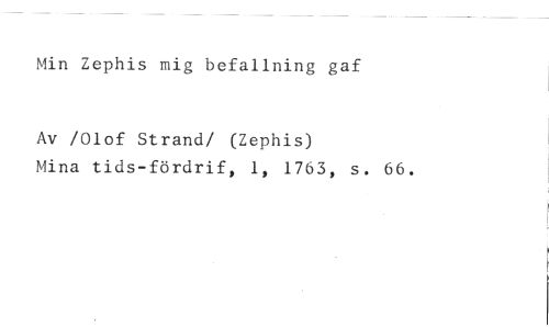 Min Zephis mig befallning gaf //// Av /Olof Strand/ (Zephis) //// Mina tids-fördrif, 1, 1763, s. 66.