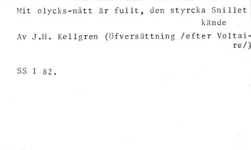 Mit olycks-mått är fullt, den styrcka Snillet //// kände //// Av J.H. Kellgren (öfversättning /efter Voltai- //// re/) //// SS I 82.