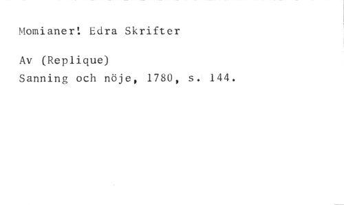 Momianert Edra Skrifter //// Av (Replique) //// Sanning och nöje, 1780, s. 144.
