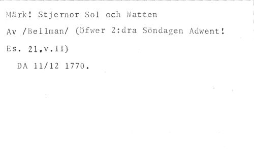Märk: Stjernor Sol och Watten //// Av /Bellman/ (Öfwer 2:dra Söndagen Adwent: Es. 21,v.11) //// DA 11/12 1770.