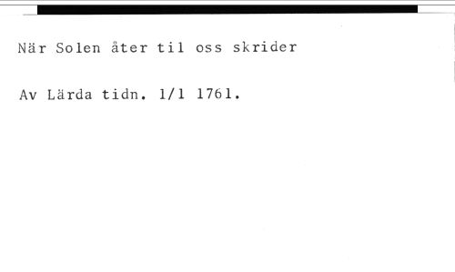 När Solen äter til oss skrider //// Av Lärda tidn. 1/1 1761.