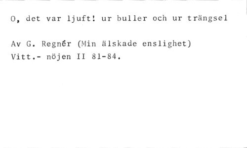 0, det var ljuft! ur buller och ur trängsel //// Av G. Regnar (Min älskade enslighet) Vitt.- nöjen II 81-84.