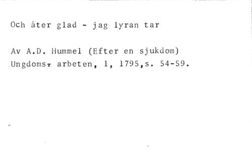 Och åter glad - jag lyran tar //// Av A.D. Hummel (Efter en sjukdom) Ungdoms.- arbeten, 1, 1795,s. 54-59.