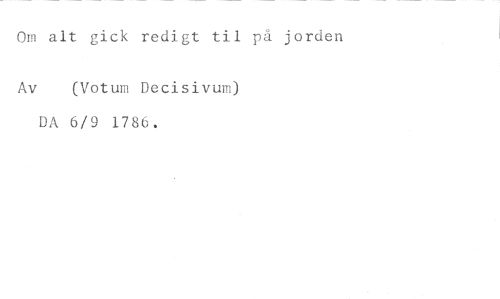 Om alt gick redigt til på jorden //// Av (Votum Decisivui) //// DA 6/9 1786.
