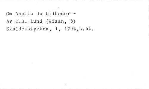 Om Apollo Du tilbeder Av O.B. Lund (Wisan, 8) //// Skalde-stycken, 1, 1794,s.64.
