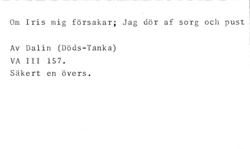 Om Iris mig försakar; Jag dör af sorg och pust '! //// Av Dalin (Döds-Tanka) VA III 157. //// Säkert en övers.