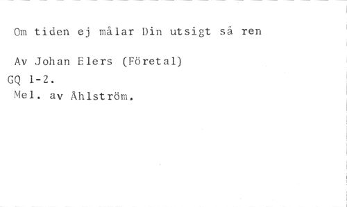 Om tiden ej målar Din utsigt så ren Av Johan Elers (Företal) //// GQ 1-2. //// 'del. av Åhlström.