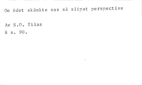 Om ödet skänkte oss så slipat persnective //// Av S.O. Tilas B s. 90.