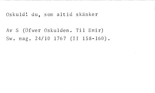 Oskuld: du, som altid skänker //// Av S (Öfwer Oskulden. Til Emir) Sw. mag. 24/10 1767 (II 158-160).