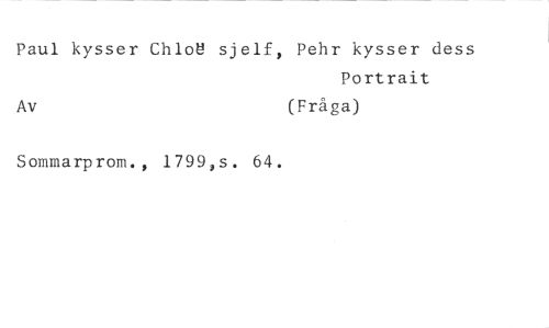 Paul kysser Chloe sjelf, Pehr kysser dess //// Portrait //// Av (Fråga) //// Sommarprom., 1799,s. 64.