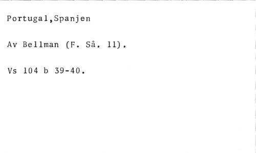 Portugal,Spanjen //// Av Bellman (F. Så. 11). //// Vs 104 b 39-40.