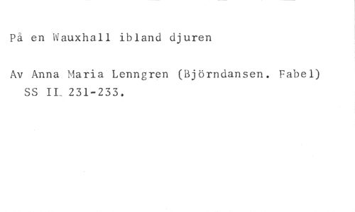 På en Wauxhall ibland djuren //// Av Anna Maria Lenngren (Björndansen. Fabel) SS IL. 231-233.