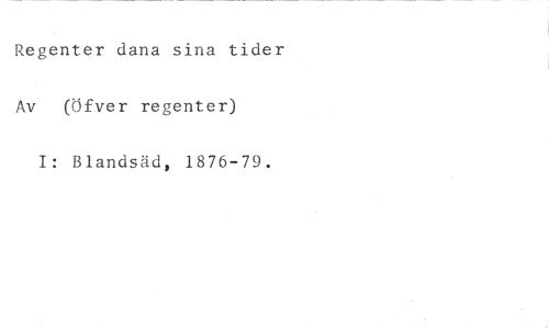 Regenter dana sina tider Av ( fver regenter) //// I: Blandsäd, 1876-79.