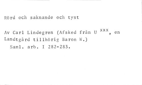 Rörd och saknande och tyst //// Av Carl Lindegren (Afsked frän U xxx,en Landtgård tillhörig Baron W.) Saml. arb. I 282-283.