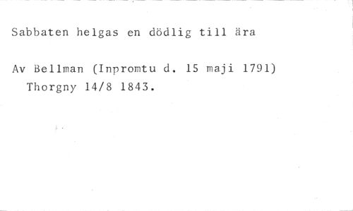 Sabbaten helgas en dödlig till ära //// Av Bellman (Inpromtu d. 15 maji 1791) Thorgny 14/8 1843.