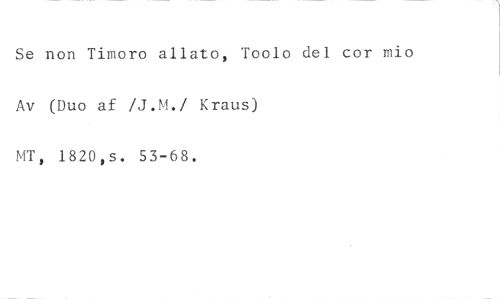 Se non Timoro allato, Toolo del cor mio //// Av (Duo af /J.M./ Kraus) //// MT, 1820,s. 53-68.