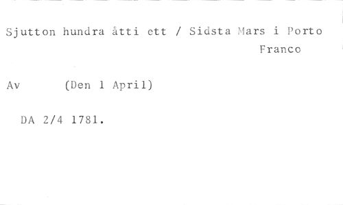 utton hundra åtti ett / Sidsta Mars i Porto //// Franco //// Av (Den 1 April) //// DA 2/4 1781.
