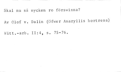 Skal nu så mycken ro försvinna? //// Av Olof v. Dalin (Öfeer Amaryllis bortresa) Witt.-arb. 11:4, s. 75-76.
