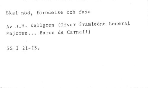 Skal nöd, förödelse och fasa //// Av J.H• Kellgren (ifver framledne General Majoren... Baron de Carnall) //// SS I 21-23.