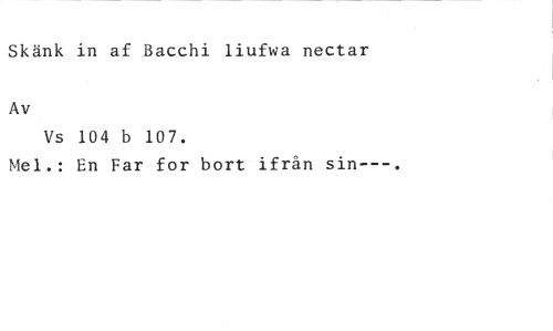Skänk in af Bacchi liufwa nectar //// Av //// Vs 104 b 107. //// Mel.: En Far for bort ifrån sin---.