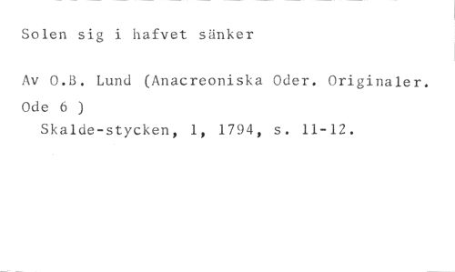 Solen sig i hafvet sänker //// Av 0.5. Lund (Anacreoniska Oder. Originaler. //// Ode 6 ) //// Skalde-stycken, 1, 1794, s. 11-12.