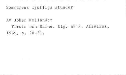 Sommarens ljufliga stunder //// Av Johan Wellander //// Tirsis och Dafne. Utg. av N. Afzelius, 1939, s. 20-21.